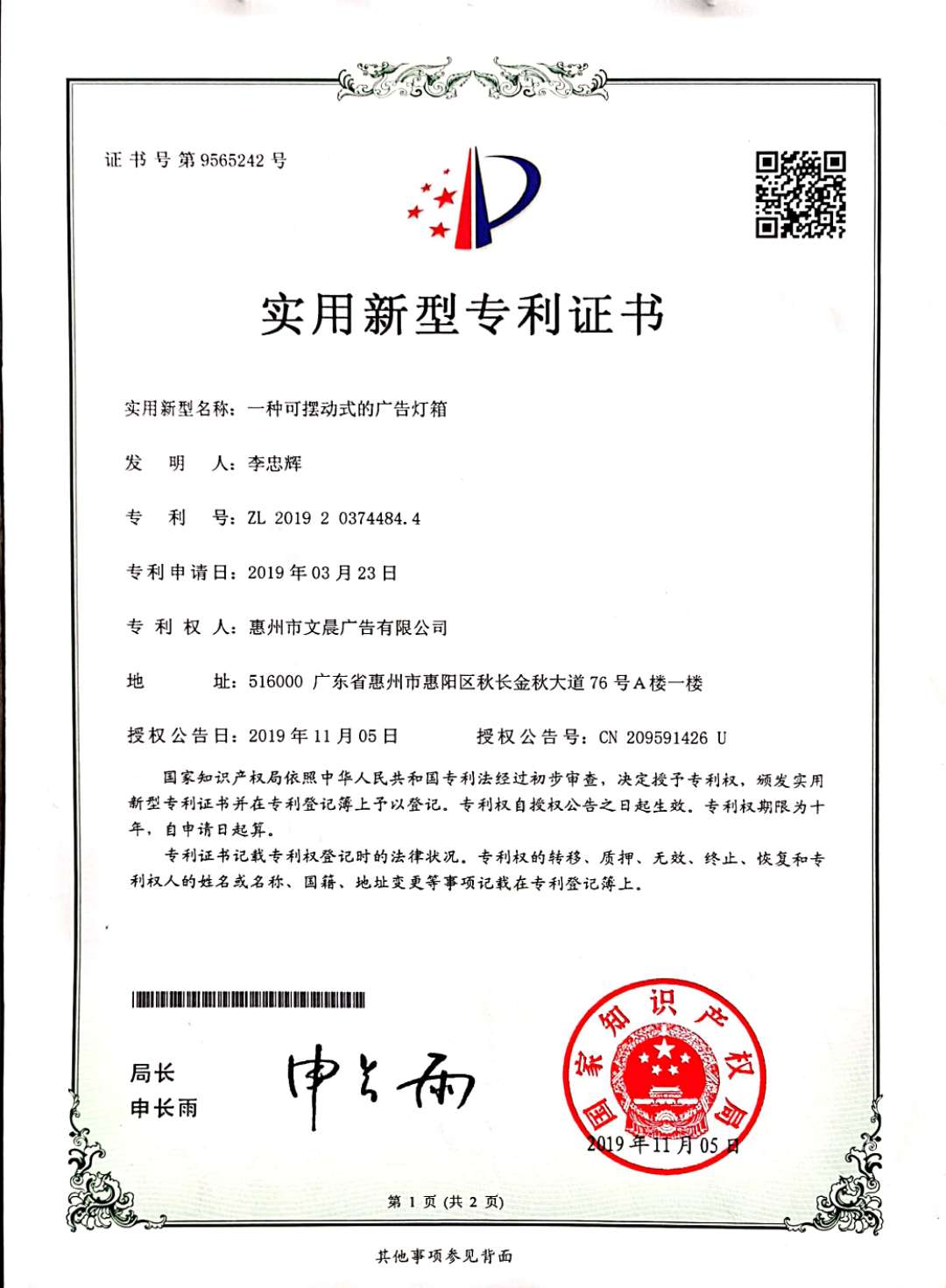 惠州市文晨燈箱科技有限公司,創(chuàng)建于2012年4月,坐落在惠州市惠陽(yáng)區(qū)美麗的歷史文化名鎮(zhèn)秋長(zhǎng)鎮(zhèn),毗鄰革命先烈葉挺將軍故居。惠州市文晨燈箱科技有限公司創(chuàng)建以來(lái),一直秉著客戶至上!品質(zhì)為先!服務(wù)為重的經(jīng)營(yíng)理念。嚴(yán)格要求自我!以客戶的標(biāo)準(zhǔn)不斷完善產(chǎn)品的質(zhì)量,追求更好的服務(wù)客戶...[了解更多]